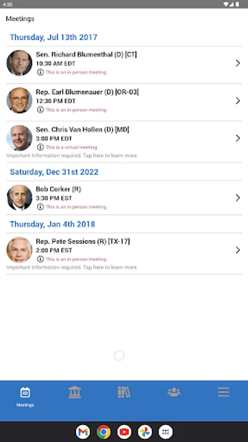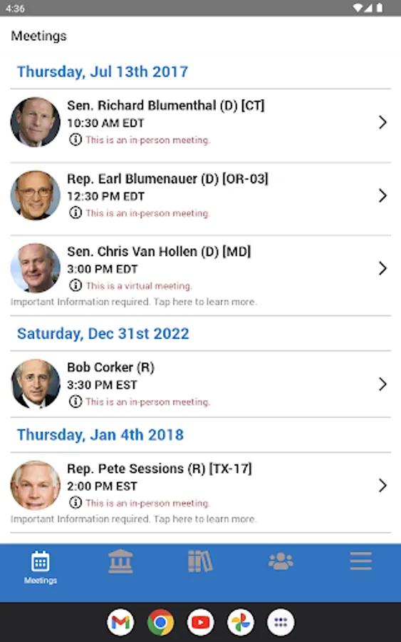 - Integration with Google walking maps to navigate between Congressional offices