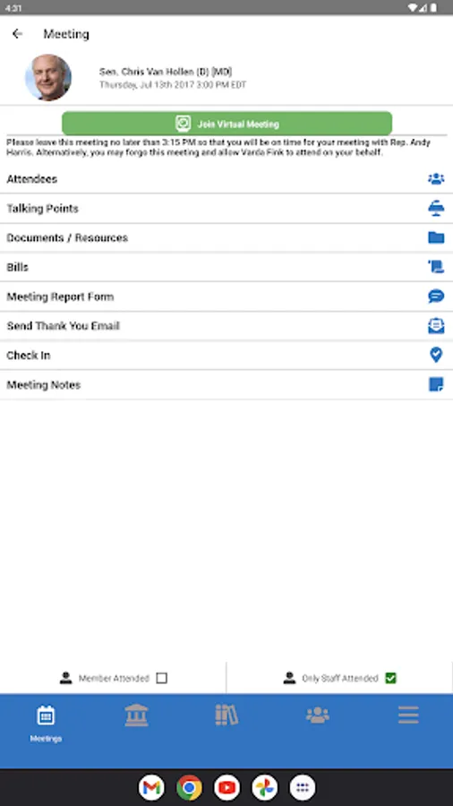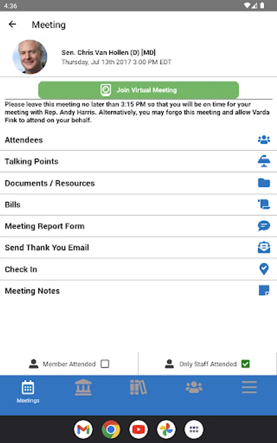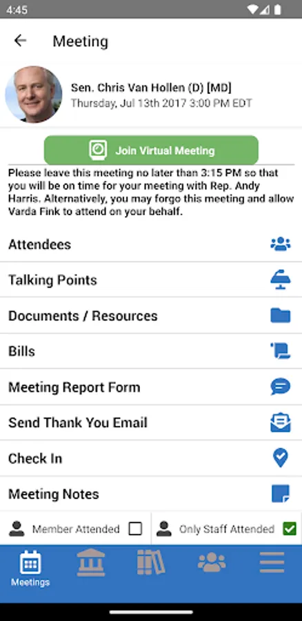 - Pre-loaded meeting schedules for each advocacy event participant