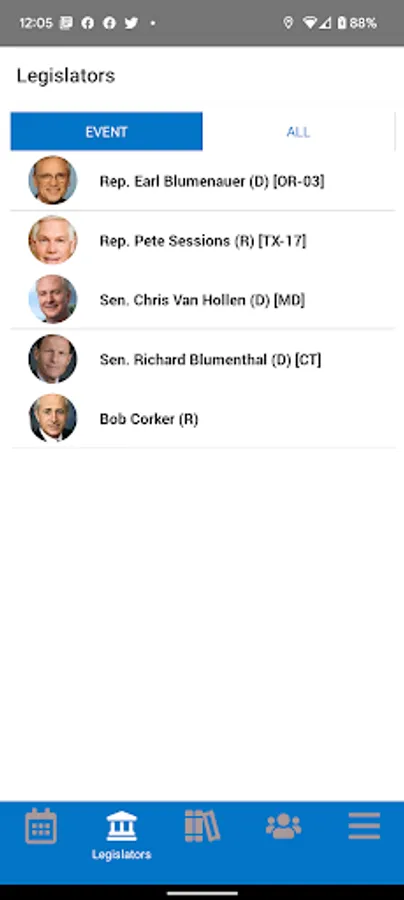 - View legislator profiles with biographies, vote history, committee assignments, recent news articles & links to each members social media profiles