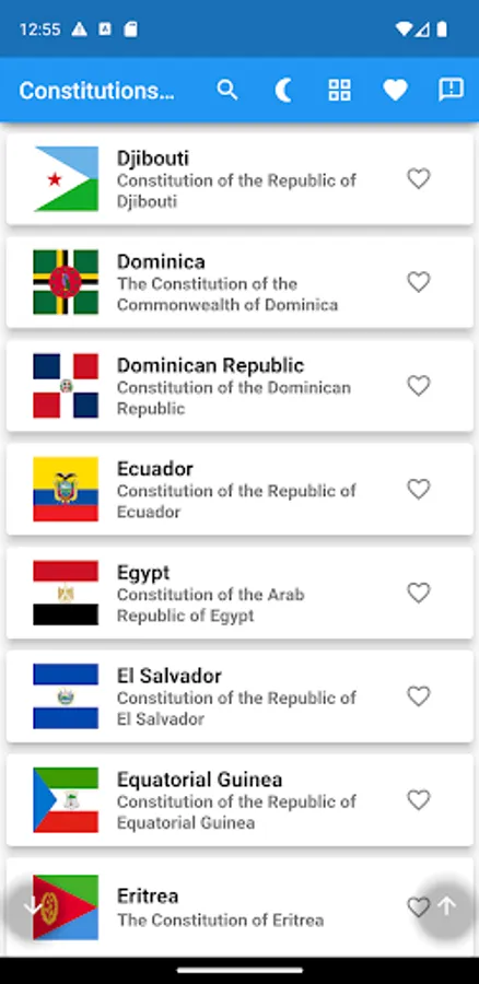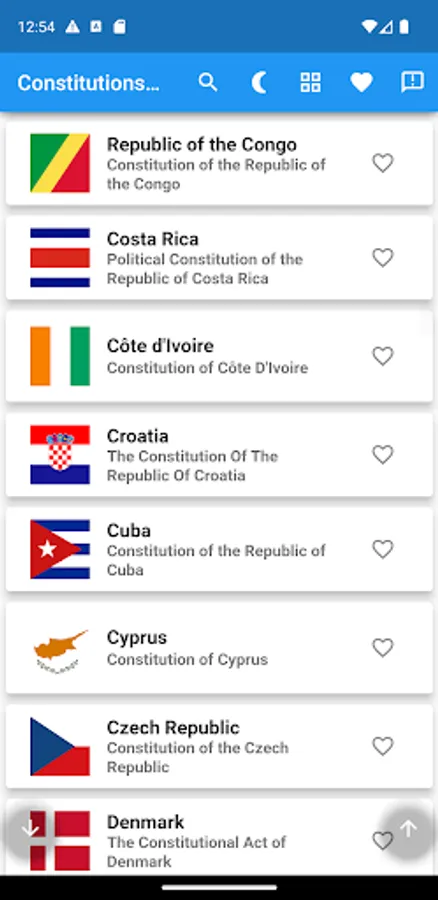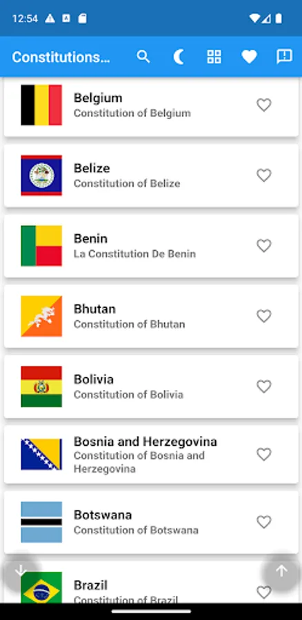 This version contains the constitutions of over 160 countries with all the available translations. This version contains the constitution of Afghanistan, Albania, Algeria, Andorra, Angola, Antigua and Barbuda, Argentina, Armenia, Australia, Austria, Azerbaijan, Bahamas (The), Bahrain, Bangladesh, Barbados, Belarus, Belgium, Belize, Benin, Bhutan, Bolivia (Plurinational State of), Bosnia and Herzegovina, Botswana, Brazil, Brunei Darussalam, Bulgaria, Burkina Faso, Burundi, Cambodia, Cameroon, Canada, Cape Verde, Central African Republic, Chad, Chile, China (People’s Republic of), Colombia, Comoros, Congo (Democratic Republic of the), Congo (Republic of the), Costa Rica, Côte d'Ivoire, Croatia, Cuba, Cyprus, Czech Republic, Denmark 1953, Djibouti, Dominica, Dominican Republic, Ecuador, Egypt, El Salvador, Equatorial Guinea, Eritrea, Estonia, Eswatini, Ethiopia, Fiji, Finland, France, Gabon, Gambia (The), Georgia, Germany, Ghana, Greece, Grenada, Guatemala, Guinea-Bissau, Guyana, Haiti, Honduras, Hungary, Iceland, India, Indonesia, Iran (Islamic Republic of),Iraq, Ireland, Israel, Italy, Jamaica, Japan, Jordan, Kazakhstan, Kenya, Kiribati, Korea (Democratic People's Republic of), Korea (Republic of), Kosovo, Kuwait, Kyrgyzstan, Lao People's Democratic Republic, Latvia, Lebanon, Lesotho, Liberia, Libya, Liechtenstein, Lithuania, Luxembourg, Madagascar, Malawi, Malaysia, Maldives, Malta, Marshall Islands, Mauritania, Mauritius, Mexico, Micronesia (Federated States of), Moldova (Republic of), Monaco, Mongolia, Montenegro, Morocco, Mozambique, Myanmar, Namibia, Nauru, Nepal, Netherlands, New Zealand, Nicaragua, Niger, Nigeria, North Macedonia (Republic of), Norway, Oman, Pakistan, Palau, Palestine, Panama, Papua New Guinea, Paraguay, Peru, Philippines, Poland, Portugal, Qatar, Romania, Russian Federation, Rwanda, Saint Kitts and Nevis, Saint Lucia, Saint Vincent and the Grenadines, Samoa, Sao Tome and Principe, Saudi Arabia, Senegal, Serbia, Seychelles, Sierra Leone, Singapore, Slovakia, Slovenia, Solomon Islands, Somalia, South Africa, South Sudan, Spain ,Zambia, Zimbabwe. What is so unique is that this application also contains various translations of the constitutions of over 83 countries with more to come. Future updates will include all the countries of the world constitution.