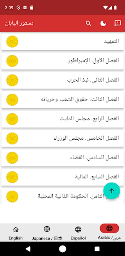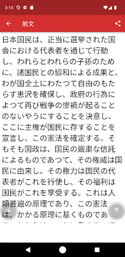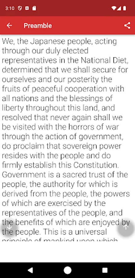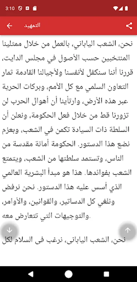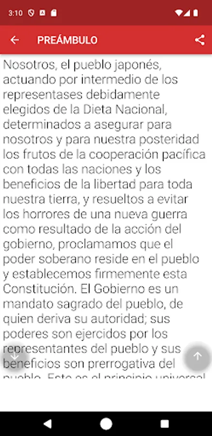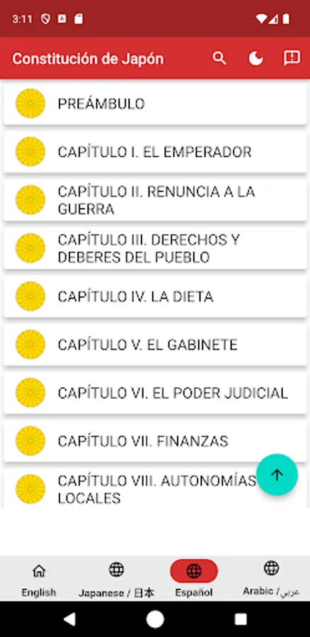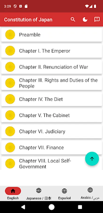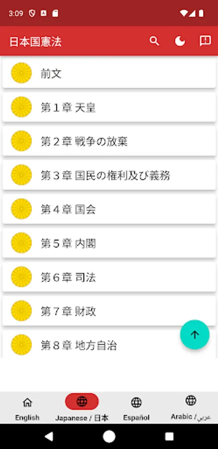 This application contains the Constitution of Japan in English, Japanese, Spanish, and Arabic.