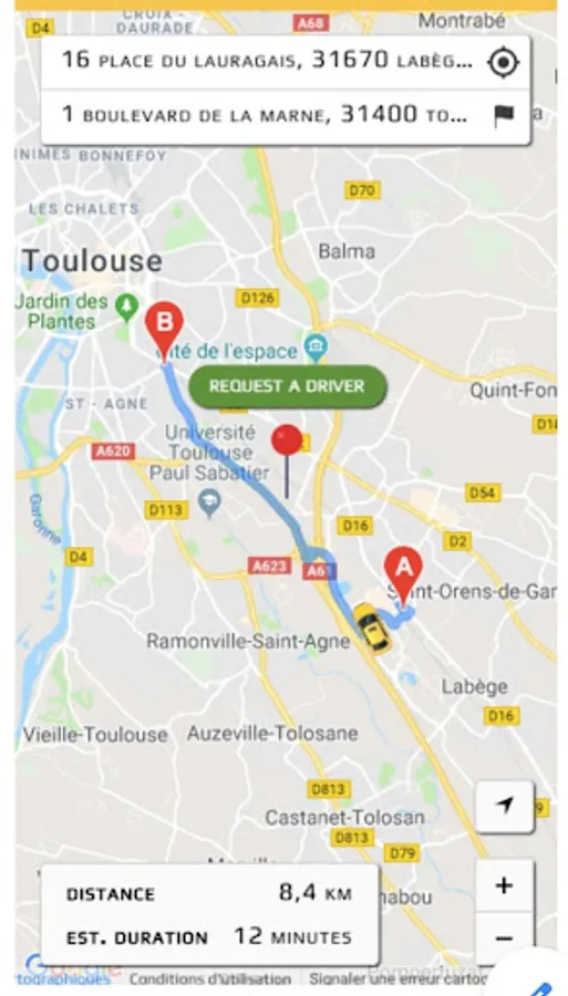 2. The map will appear with your location and a box to mark your location or the starting point and then mark the destination or arrival point.