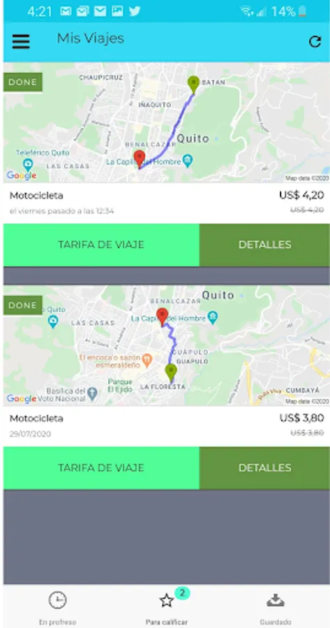 3. Request a driver and the available ones will appear in the vicinity of your location. of these, you choose the type of service. It will indicate the data of the driver and vehicle, the price and the forms of payment. Your notice will reach the chosen driver and voila ... sure i GO ... !!