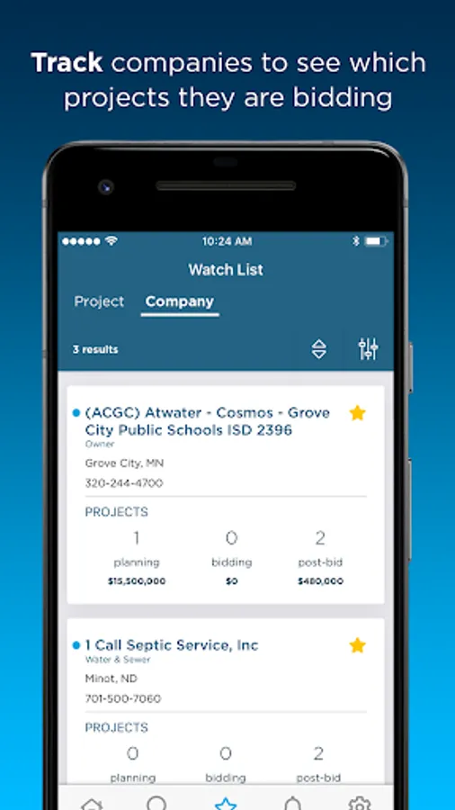 - Get push notifications when updates are made to projects and companies on your Watch List