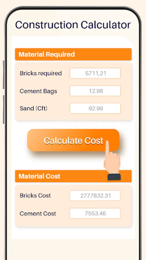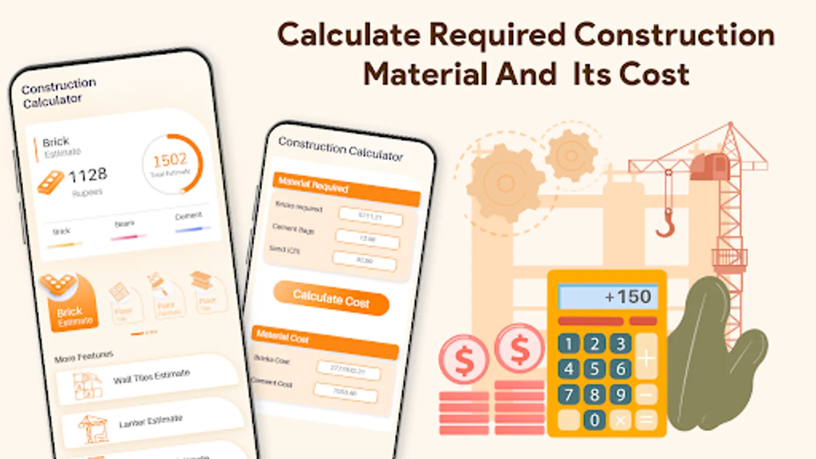 construction calculator and costing app work out the calculation of material expenses for home construction You can utilize this Concrete Calculator and building cost estimator app to quantity the amount of material and cost of a given development area. The construction estimator app quantity material assists you with working out the general expense of house construction. With the Concrete Calculator and costing application, you can get a material estimator by giving the given construction area and your development spending plan to this development construction estimating. You can get a quick expense plan of the construction in the construction quantity estimator for home builders. Construction material app and construction cost estimator calculates building-related home construction all materials and their cost it’s useful for construction contractors and building contractors. Construction apps are easy to use for civil engineers, and service companies, every person can use this construction estimator and calculate materials to make their home building good looking.