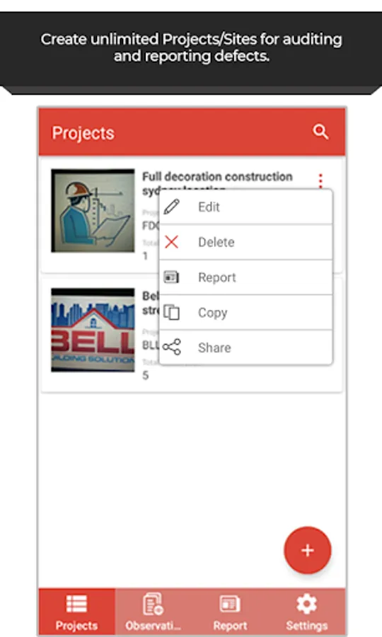 • Change the various labels from app setting according to the term you are using. You can say an item to snag, defect, observation, inspection or anything.