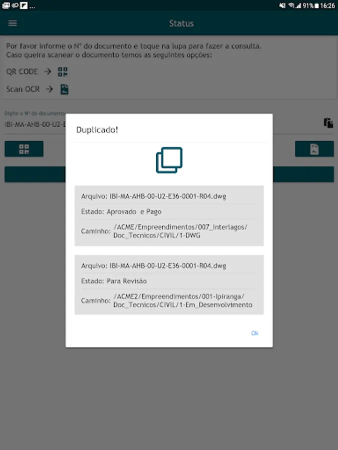 With this application it is easy to check the status of the document simply by entering its respective name. The document name can be entered manually, through QR code and OCR.