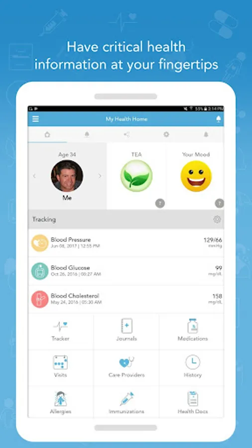 - Health Trackers: Keep track of vitals and your health journey with our many trackers (Blood pressure, cholesterol, blood glucose, weight and so much more).