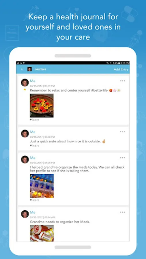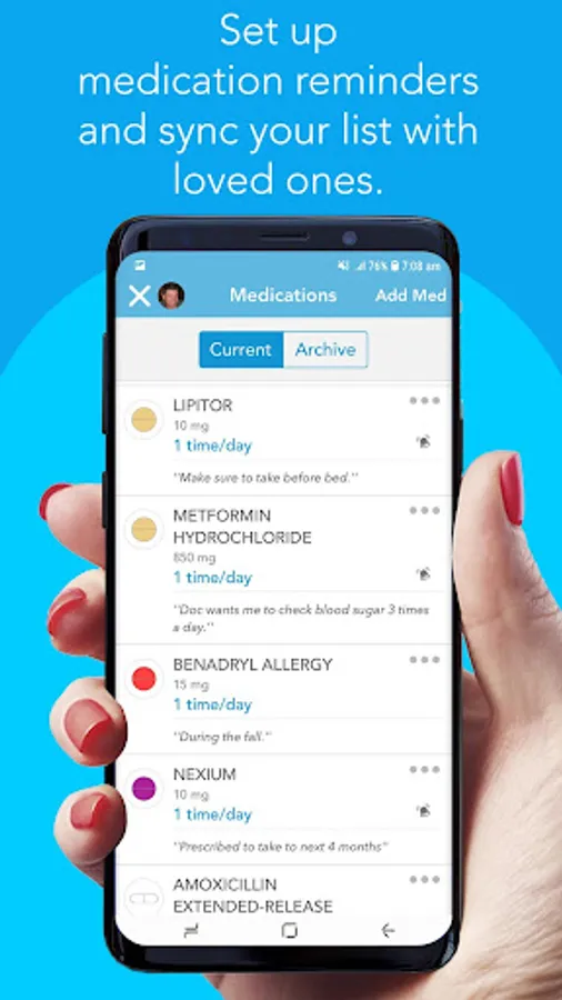 - Medication List and Reminders: Always have an updated list of prescriptions and scheduled pill reminders on hand. If lists are synced with trusted loved ones you are connected to through the app, they too will have your updated list.