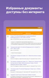 Any document or part of it can be bookmarked. Bookmarked documents are saved in the Favorites section. They are available without the Internet, so that the right code, law or textbook will always be at hand.