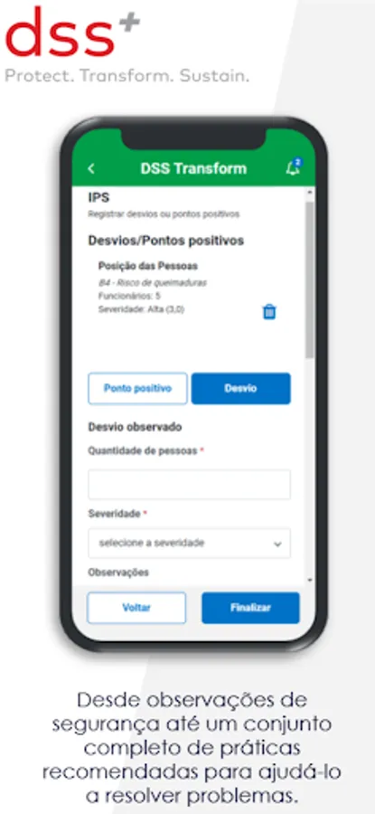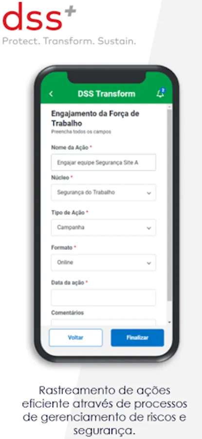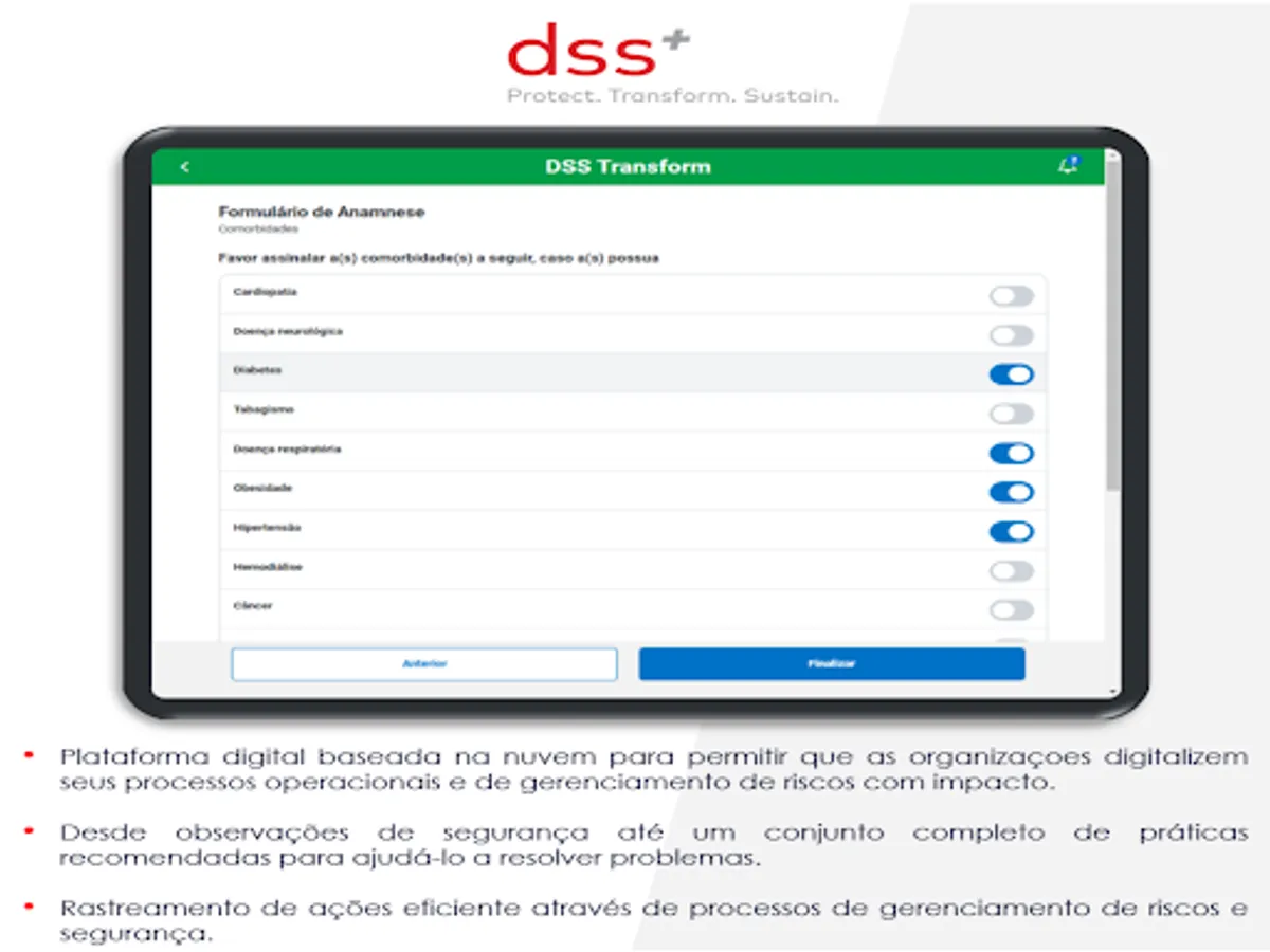 Essa plataforma digital EHS altamente adaptável e baseada na nuvem permite que as organizações digitalizem seus processos operacionais e de gerenciamento de riscos. Com base em décadas de boas práticas e metodologias comprovadas em segurança do trabalho, gerenciamento de mudanças e transformação da cultura, o DSS Transform ajuda as organizações a economizar tempo, melhorar a precisão dos dados e extrair conhecimentos relevantes para a tomada de decisões em tempo real.