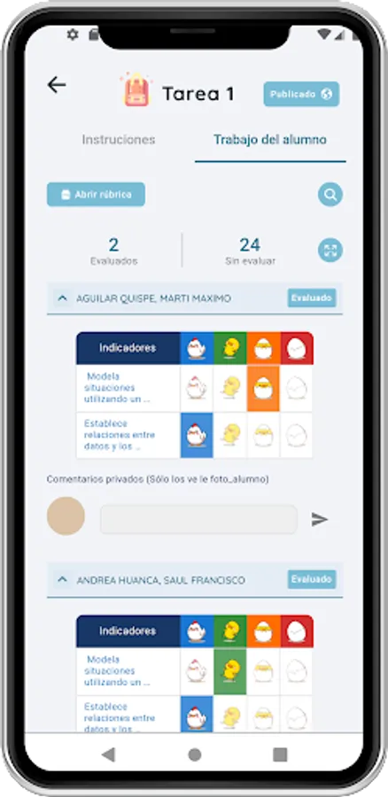 Digital Registry: The App has a digital registry that centralizes the evaluations of rubrics, tasks, sessions, organizing them by skills and competencies.