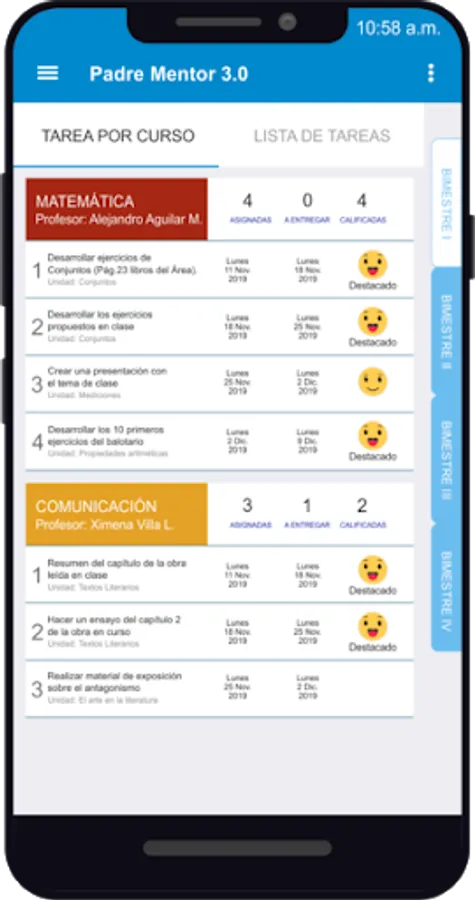 EVA Student is a communication channel that easily facilitates interaction between the family, students, teachers and management teams.