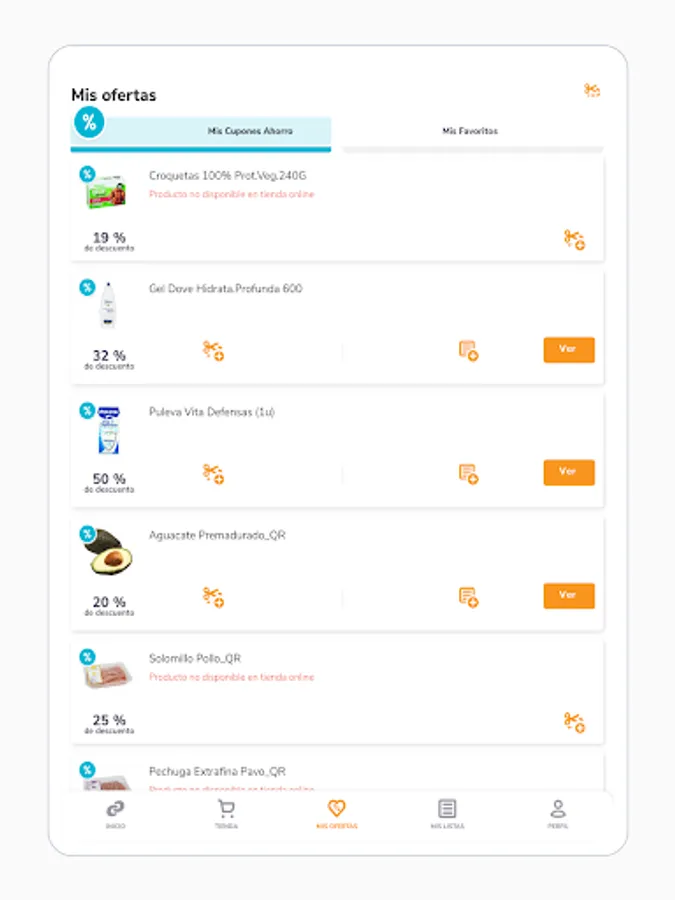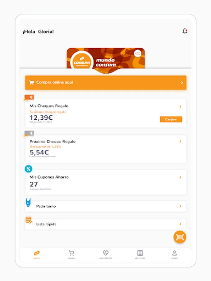• Forget where you left your supermarket discounts and coupons, with the Mundo Consum App, they will always be with you. You will have all the offers and discounts at hand to redeem them directly from your mobile. Within your Offers, you will find ‘My Savings Coupons’ where you can access all your coupons available in the personalized offer that we make to member-clients and you can add them directly to the cart.