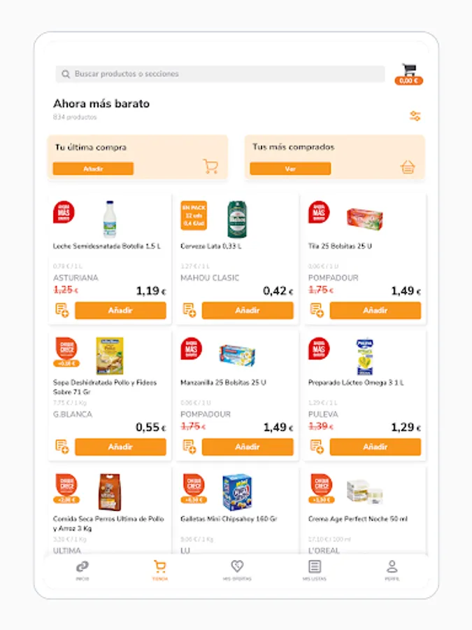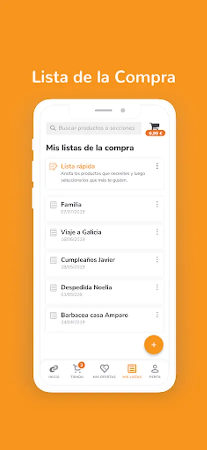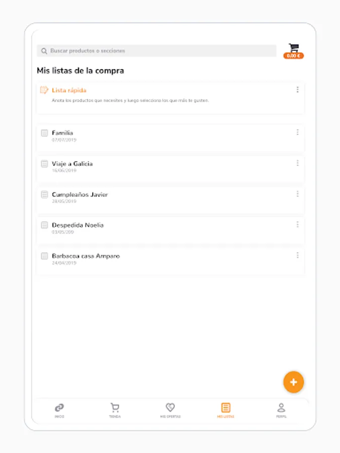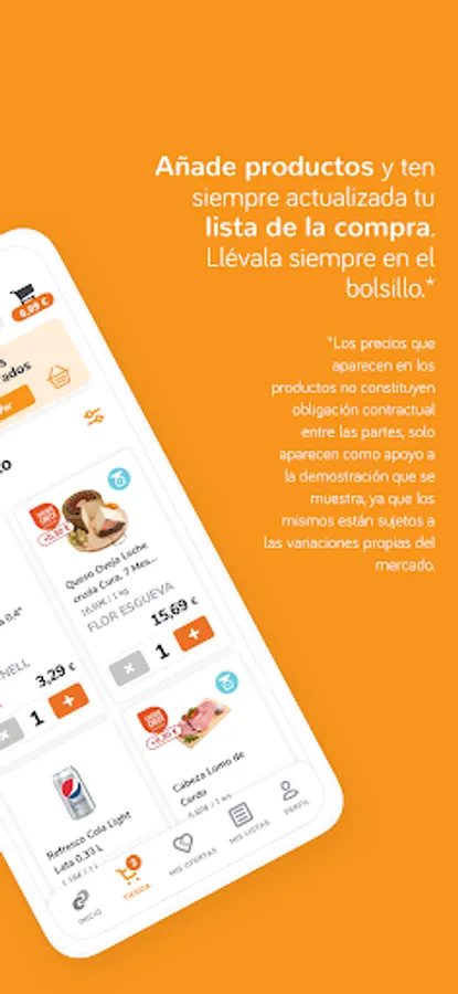 • You don't have to worry if you forget the shopping list at home, we have the solution. Forget about the paper notebook, take it on your mobile and, in addition, you can convert it into an online purchase directly from the App, where you can include all your supermarket discounts.