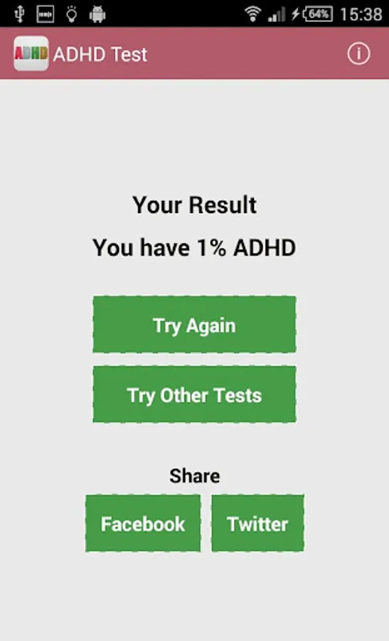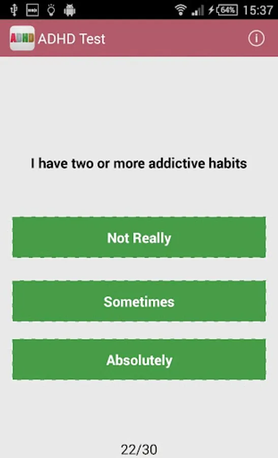 Disclaimer: made for educational purposes in order to raise awareness of common ADD symptoms. ADD and ADHD are serious conditions and no mobile or online test can give a realistic diagnosis. If you suspect that you suffer from this condition please talk to a professional.