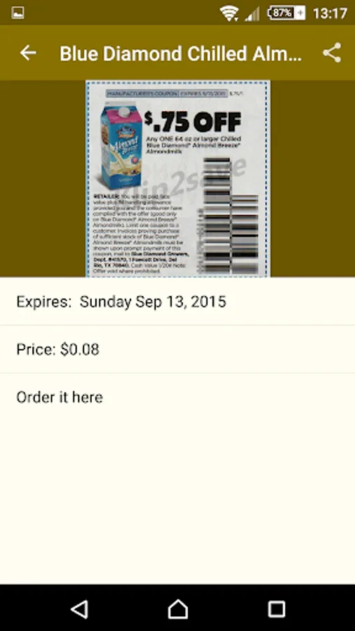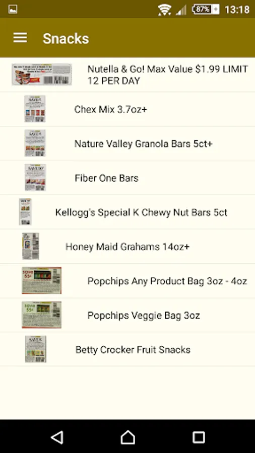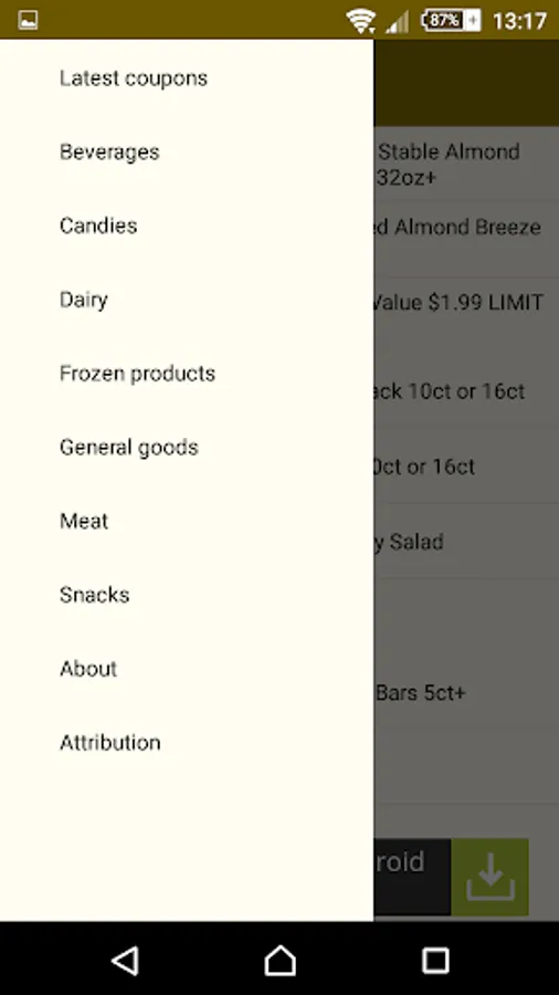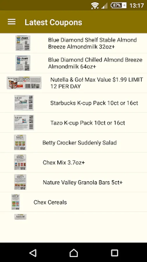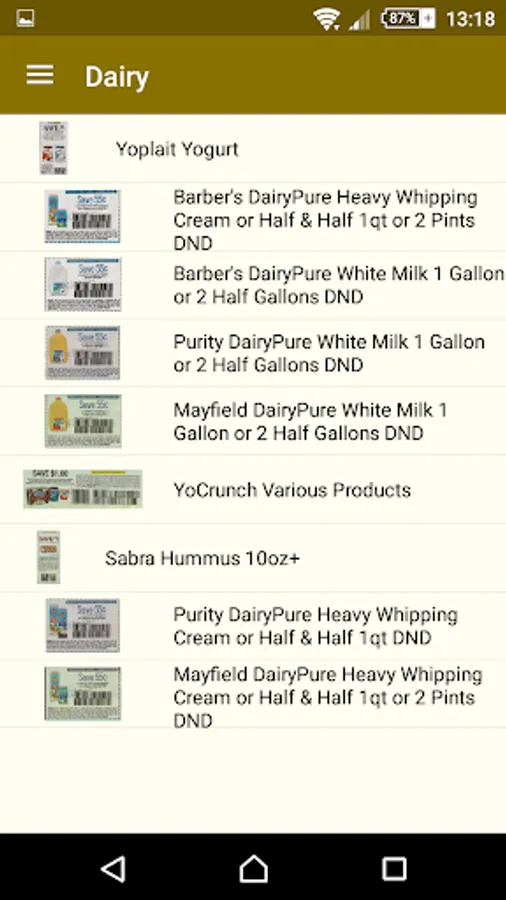 Do you want to save money on your groceries? This Grocery coupons app should help you with that. Browse through all the latest grocery manufacturer coupons that are available from the following categories: Beverages, Candies, Dairy, Frozen products, General goods, Meat and Snacks. You can also share coupons with others.