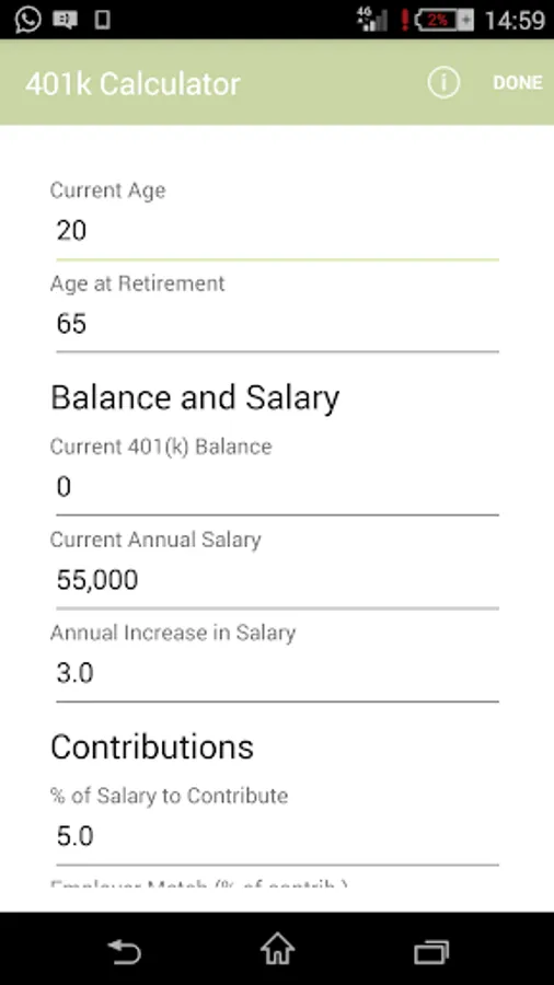 401(k) Plan Assumptions that you need to enter for an accurate calculation: