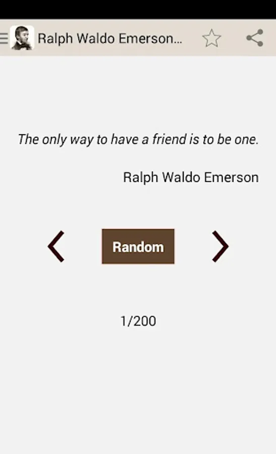 In this app we bring you an extensive collection of Ralph Waldo Emerson Quotes. You can also save your favorite quotes (which makes them available even if you're offline), search quotes, share them with your friends and set a Quote of the day daily reminder.