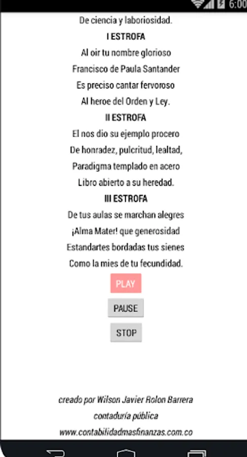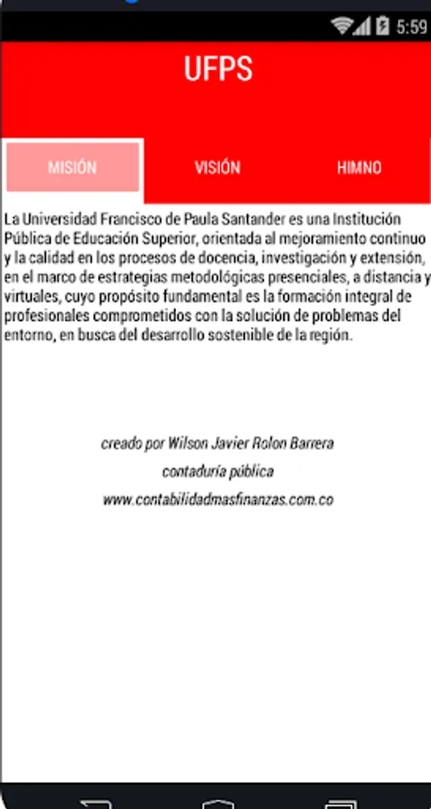 created from a student, for students; Welcome to our university Francisco Paula Santander UFPS! , you want to know what is the mission, vision and learn the anthem, you find it in this app.