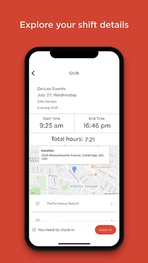 - Clock in and out of shifts