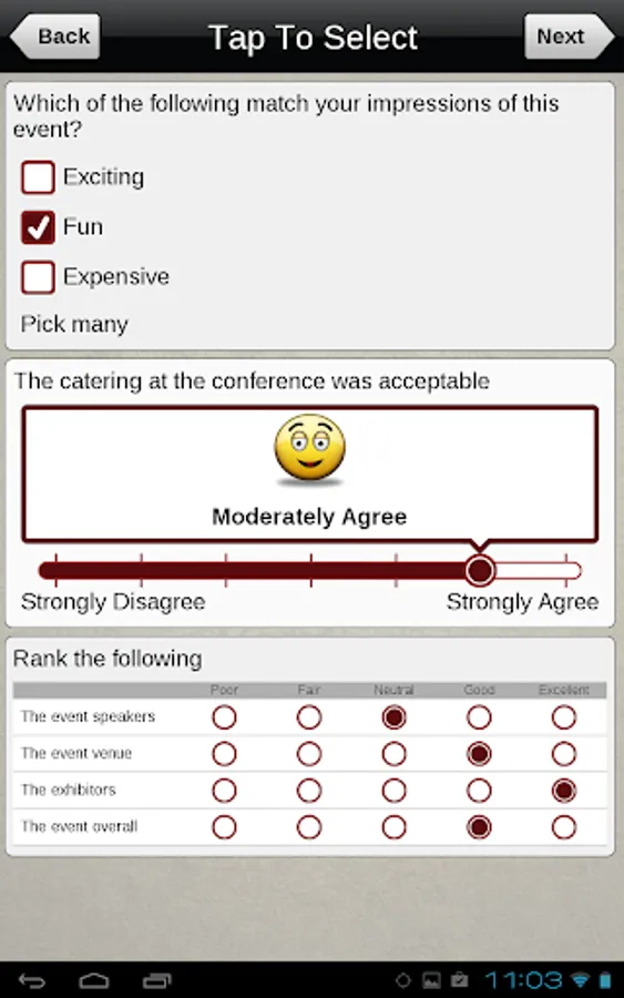 Your market research participants will love droid SURVEY because it is a new and interesting way to complete surveys and polls. Your interviewers will love it for survey intercepts because they no longer have to carry forms and clipboards to collect data - just a tablet or one of the smaller Android phone devices.