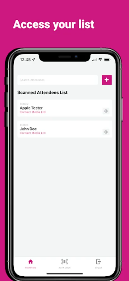 // Scan QR codes on visitor badges through your smart device to instantly access their personal contact details.