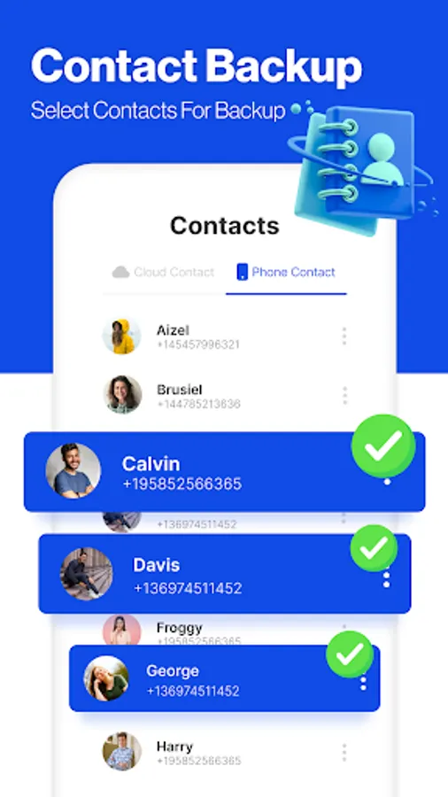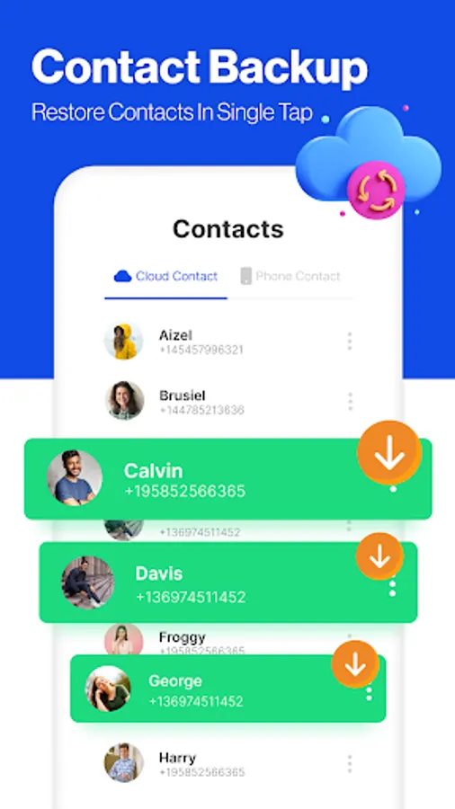 ⭐Backup Contacts to create and restore contacts on device and cloud.