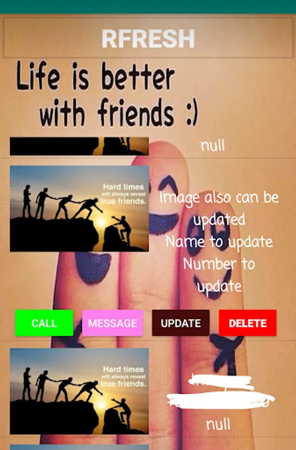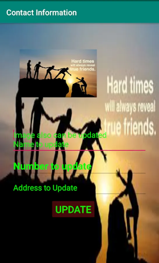 This application has an easy and best graphical user interface. we can load contacts , update and add contacts with number address and contact image.