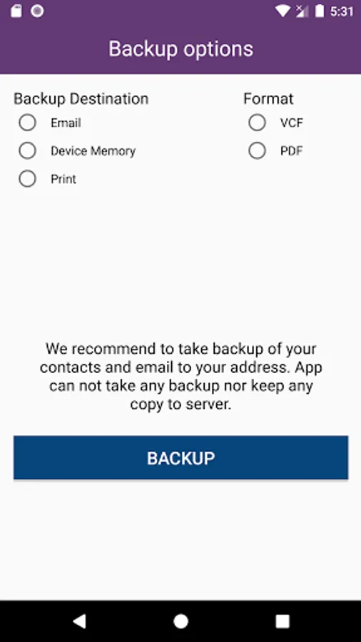 Contacts Backup is a useful application. It is a very simple and useful app.
