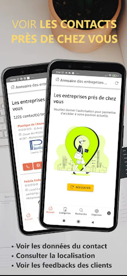 Avec une interface conviviale et intuitive, cette application vous permet de trouver rapidement les coordonnées recherchées, qu'il s'agisse de numéros de téléphone, d'adresses physiques, d'adresses e-mail ou de liens vers les sites web des entreprises. Vous pouvez également effectuer des recherches avancées par secteur d'activité, par localité ou par mots-clés, vous garantissant ainsi des résultats pertinents à chaque fois.