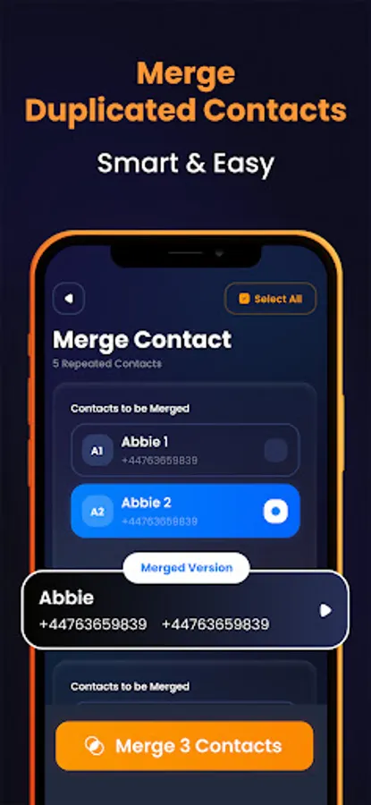 You can merge contacts with multiple numbers or names. Combining contacts is very easy and simple.