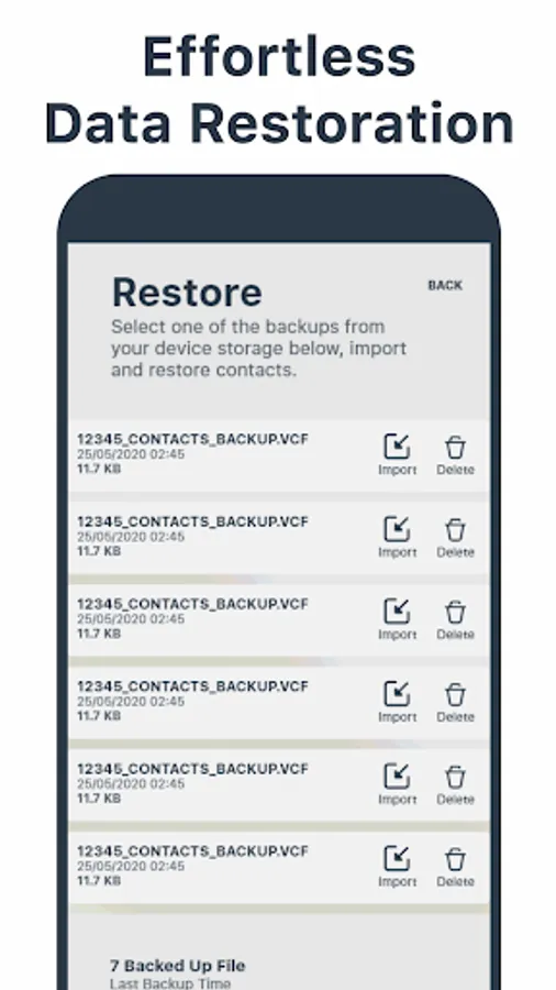 After backing up the contacts and saving them to your device, you can import your backup file later. After the backup, if you lose your contact list or something happens to your contact list, you can import one of your previous vcf backup files using the application and recover your contacts for free.