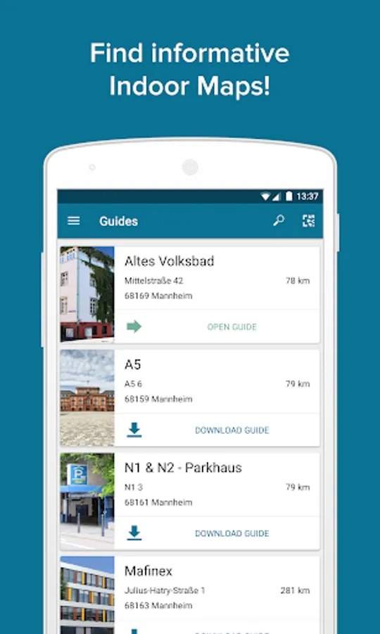 - And much more: Using the share button you can share your location with your friends. In addition, many guides have further functions that you can access via the side menu and/or the map view.