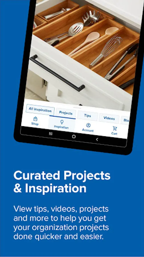 Make organization even simpler with tools to shop storage, organization, and custom closets, check prices, make purchases, and track the status of your store pick-up. Plus, you'll find project inspiration and everything you need to get started.
