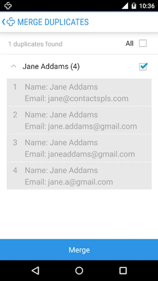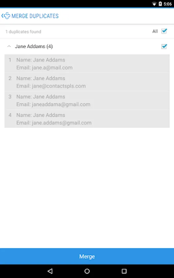 With Merge+, you can join duplicate contacts in your Android phone & Tablet with only three clicks:
