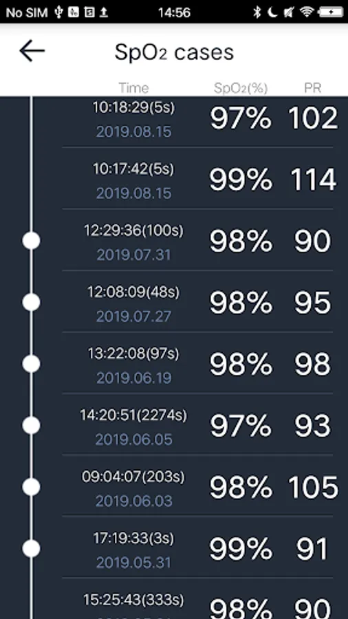 Detailed display of the data list, so that you can accurately grasp the specific situation of blood oxygen, pulse rate, etc.