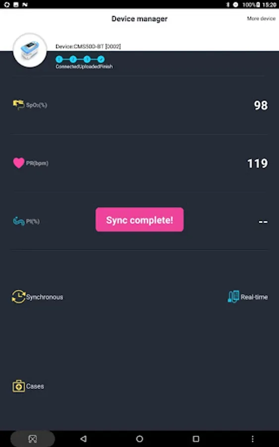 The app is used to connect the device and receive the historical data via Bluetooth.