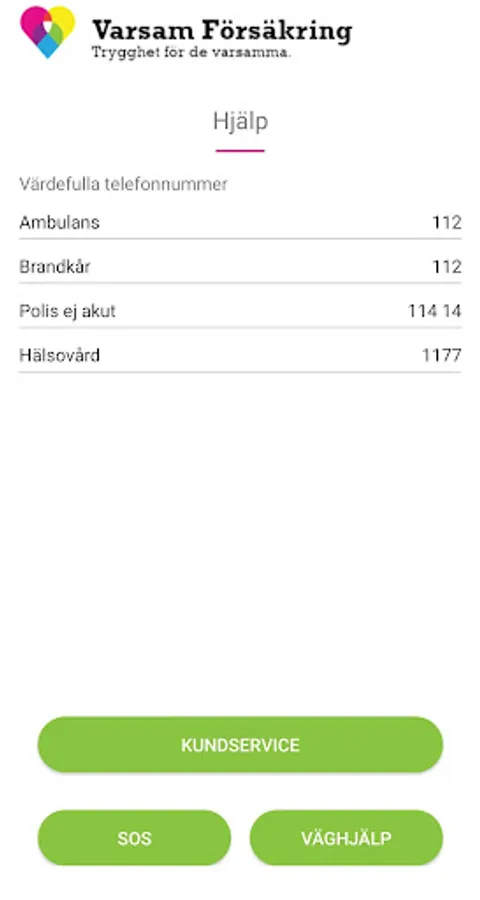 In the Varsam-App you can also pre-register your damage outside Skadeservice opening hours, you also always have important phone numbers available to eg emergency services, car repairers or our customer service, we are never more than a click away!