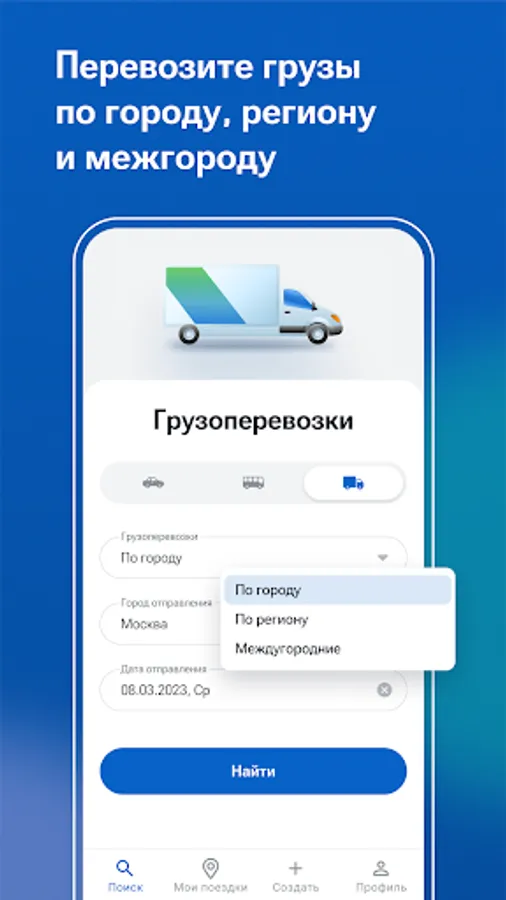 The service unites carriers and shippers throughout Russia and the CIS countries. Offer your conditions for the delivery of goods and find many orders. Organize cargo transportation without intermediaries and on transparent terms.