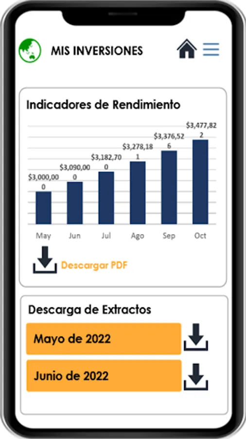 In the app you can see and download each of your contracts, you can also keep statistics of your performance.