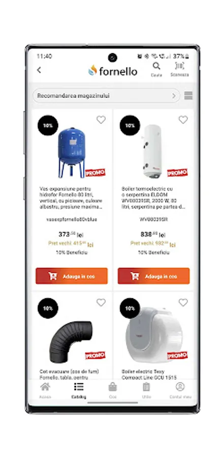 With the Fornello application, you can easily place orders from over 10,000 products grouped into 10 main categories, easily identifying sanitary, thermal, solar, climatic products and their benefits. With the help of the application you will be constantly up to date with the special offers and news of Fornello, you will identify the nearest Fornello store and its partners.