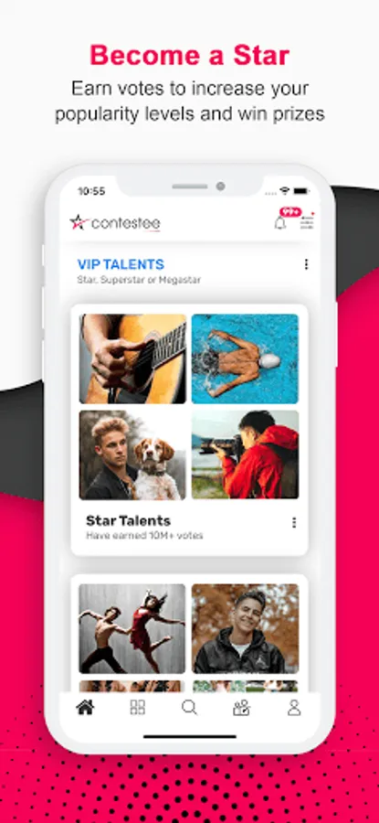 Voters - Like social media posts, voters can watch short videos from talented people and vote for the winners. With this platform, voters have an active role in talent discovery and the journey of contestants to become a star. Instead of tossing away meaningless likes, voters now have meaningful votes to influence the results of the contests. Their opinion matters. Voters are eligible to get rewards and monetize their screen time.