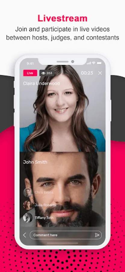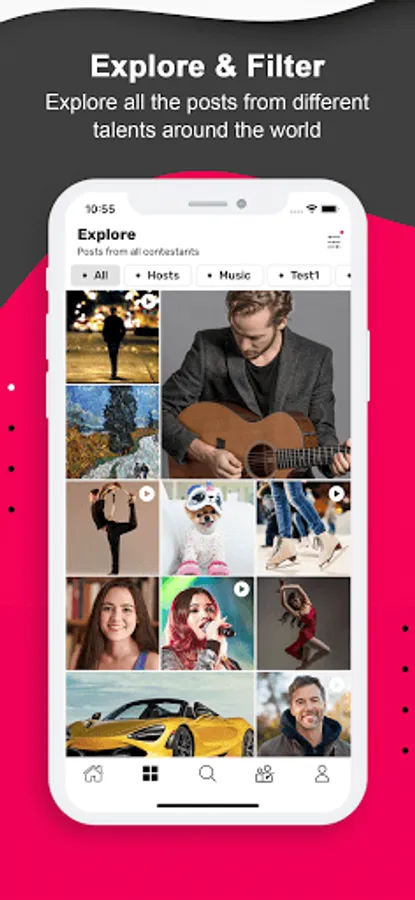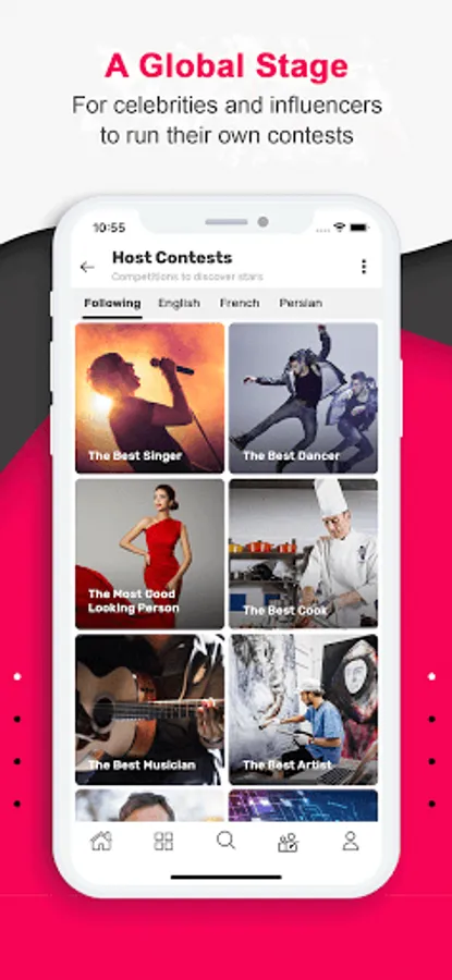 Contestants - Any talented person, anywhere in the world, can upload a short video of their talents to participate in different contests and get votes from people around the world. Winners are eligible to get prizes and monetize their skills.