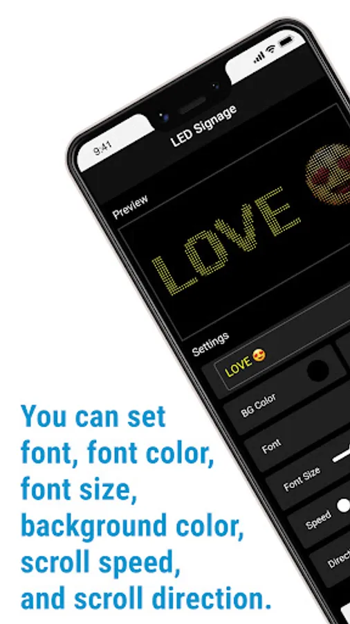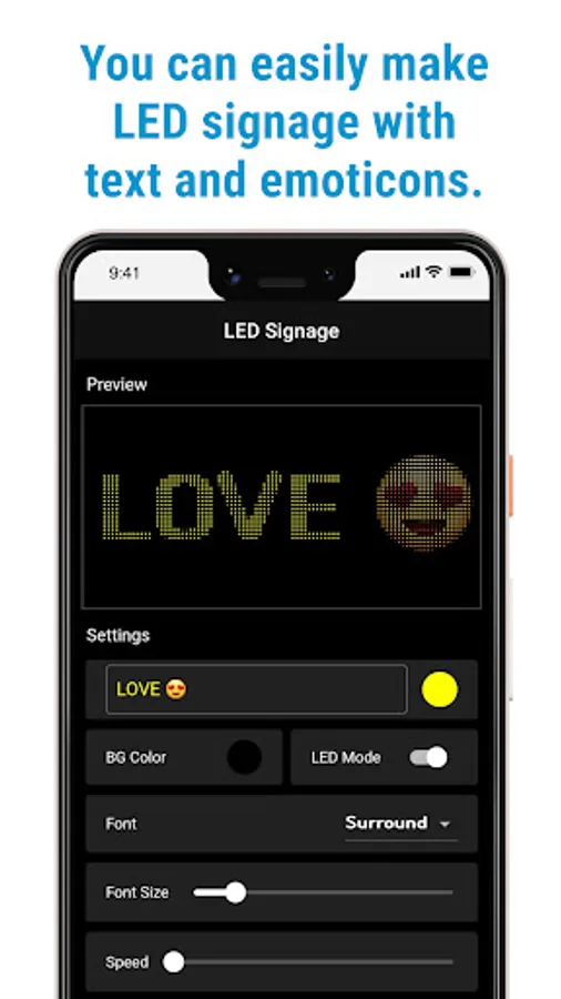 1. You can easily make and use LED signage with desired phrases and emoticons. The following settings are possible in detail.