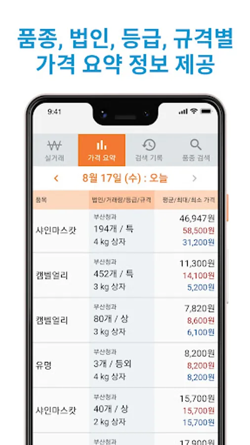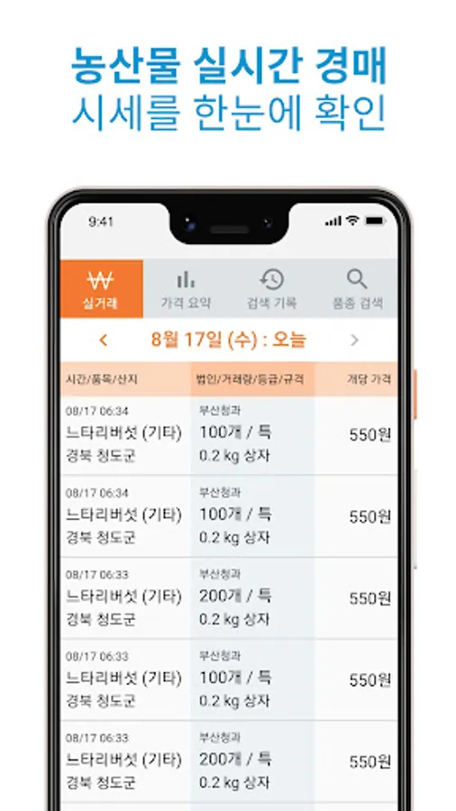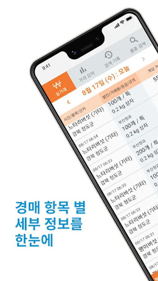 Application to check the auction price of agricultural products in the nationwide wholesale market