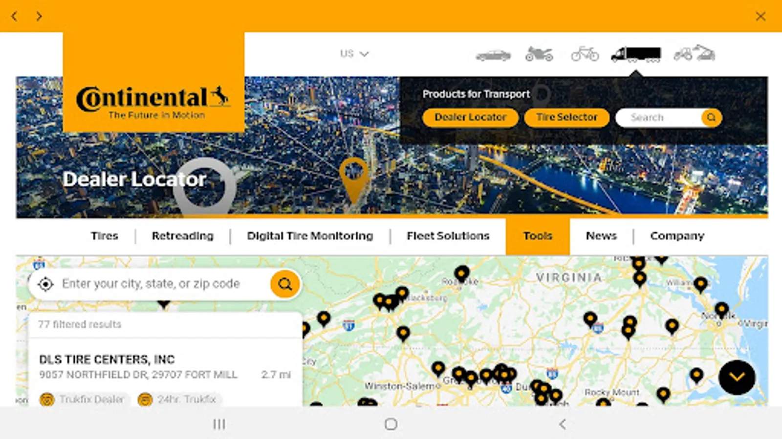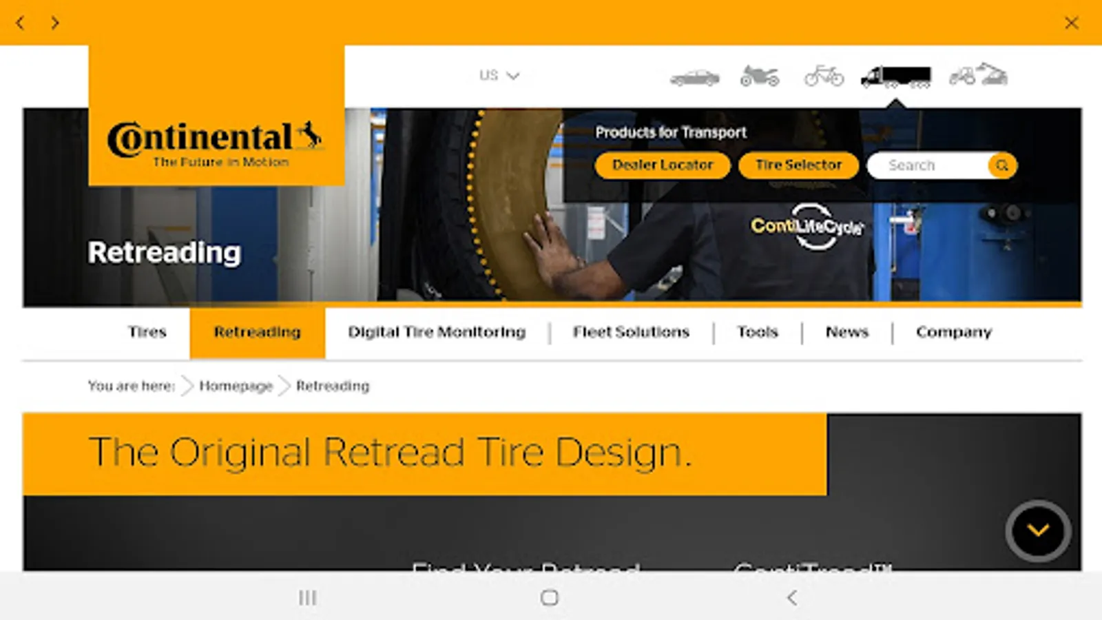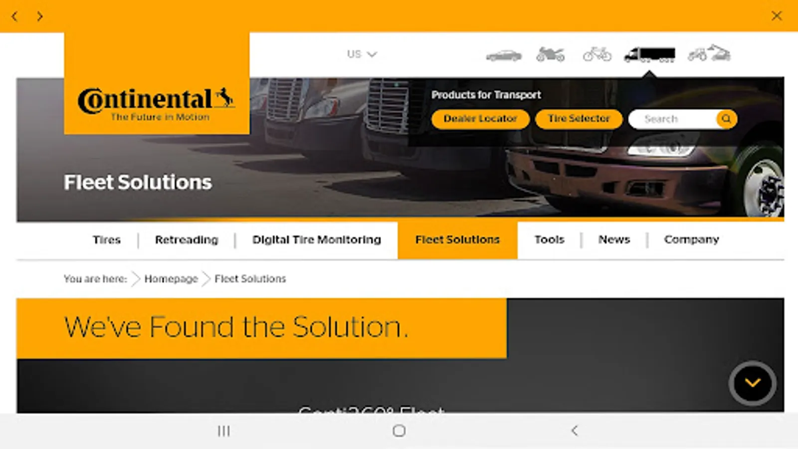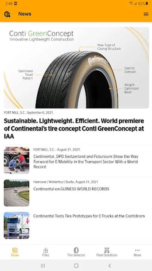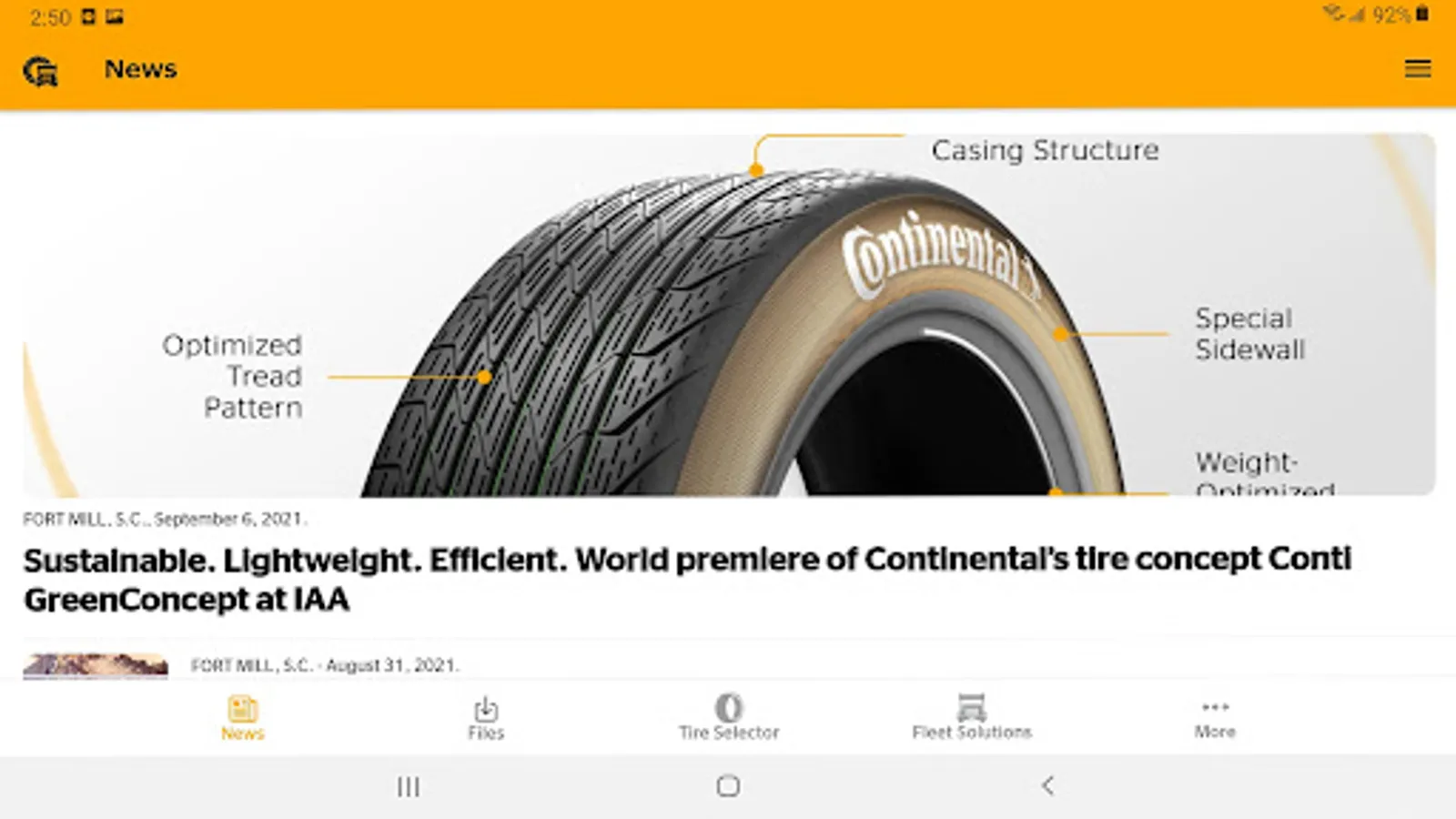 This app offers many capabilities, including access to News, Fleet Solutions, and Continental Truck Tire Product information. Documents are available for off line usage upon selection and documents can be shared