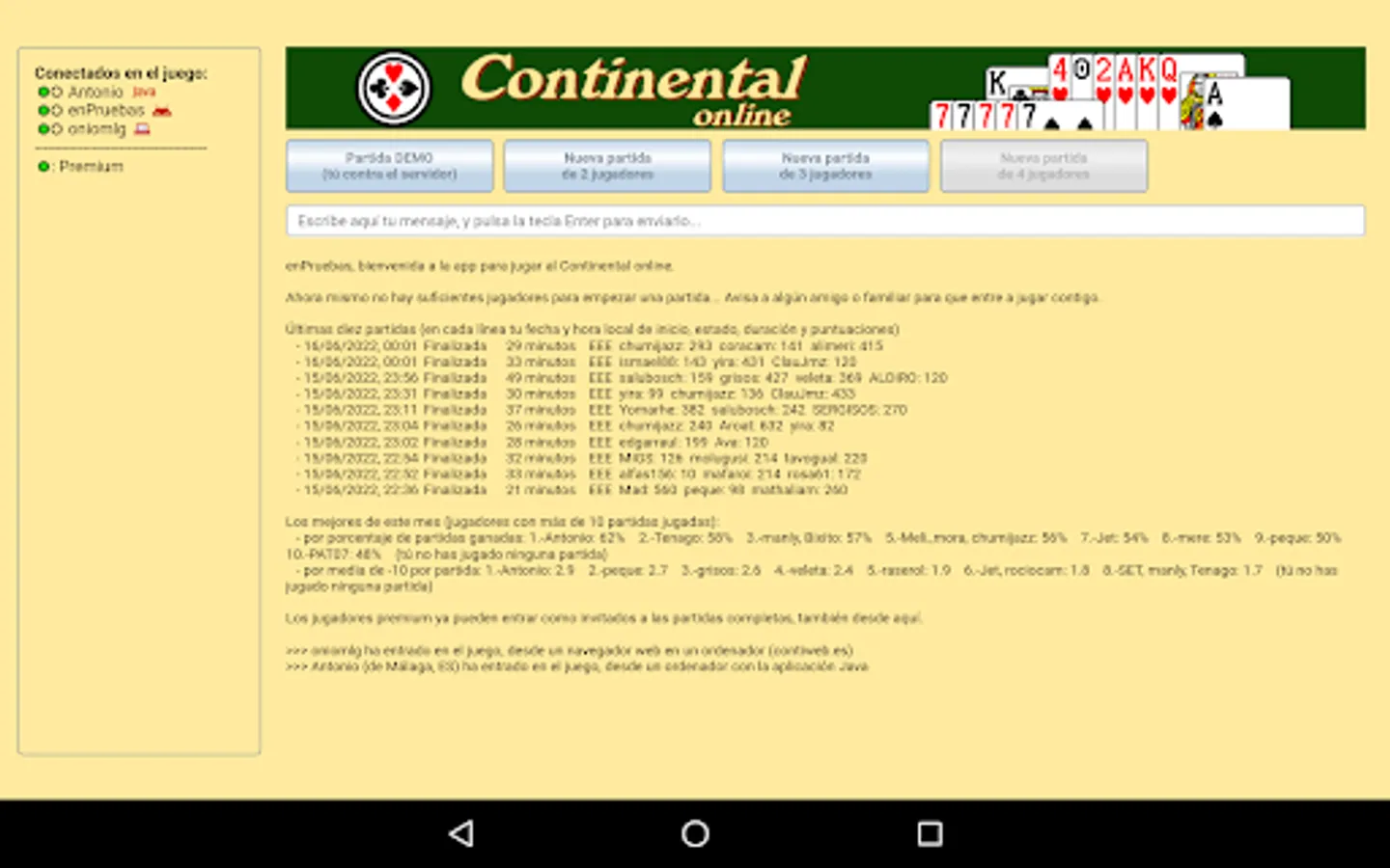 It's a real-time multiplayer game, so you'll need a stable internet connection (although if it cuts out or you crash, you can still rejoin your game, even from another device). You will play and you will be able to chat with other connected players from the same app, from the web page or from the desktop Java application (valid only for computers).