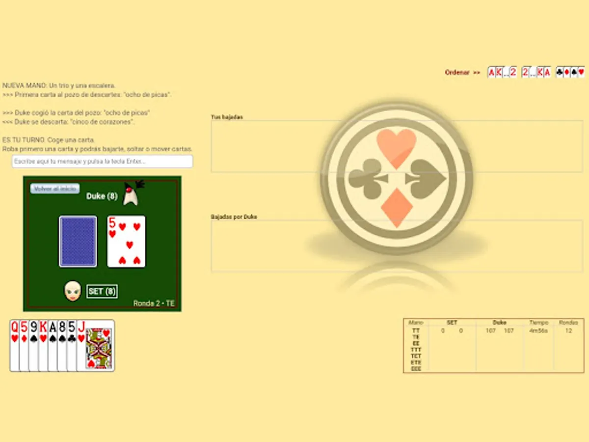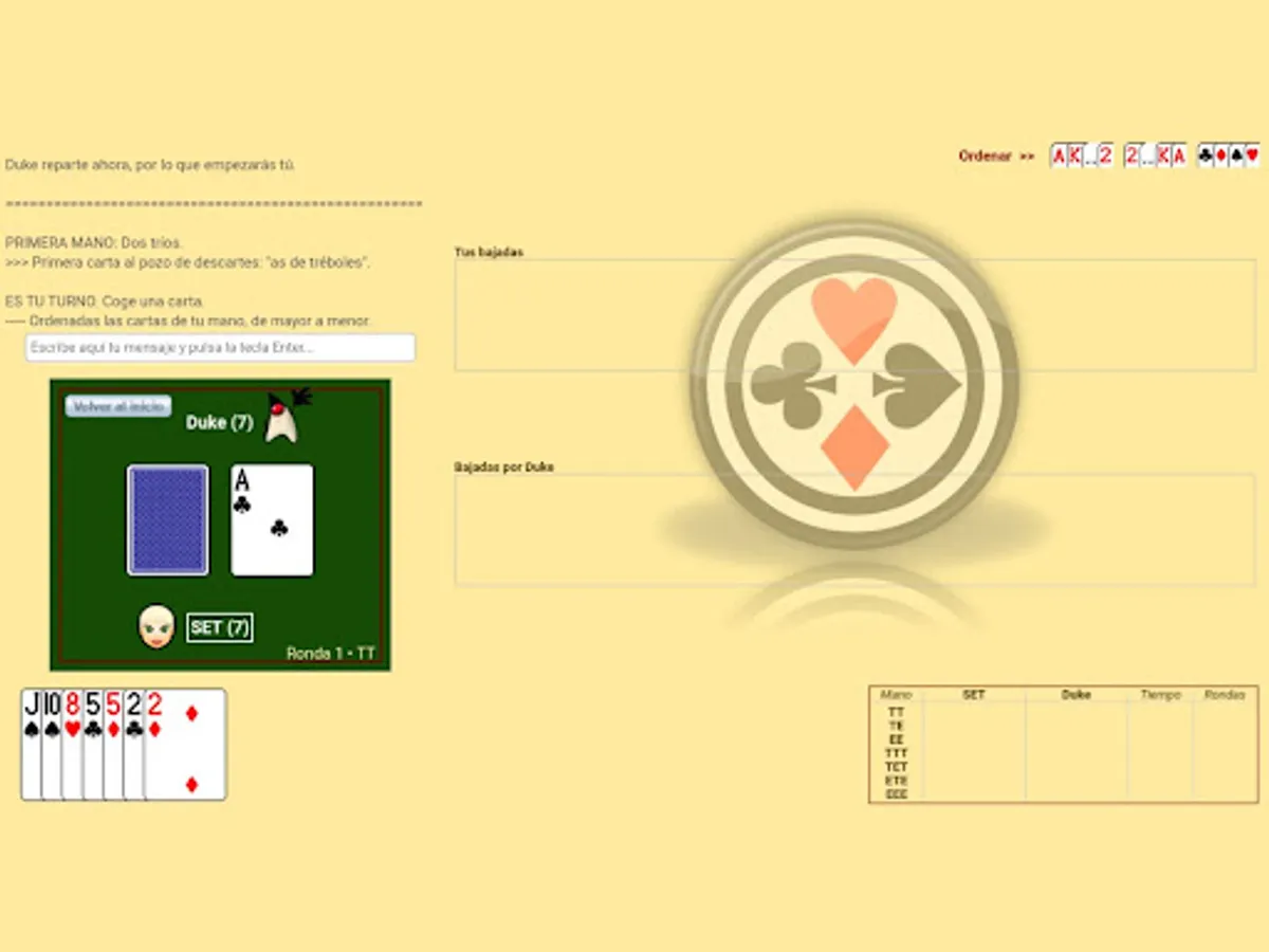 You can choose to play with the classic cards or with high visibility cards (with green clubs and blue diamonds).