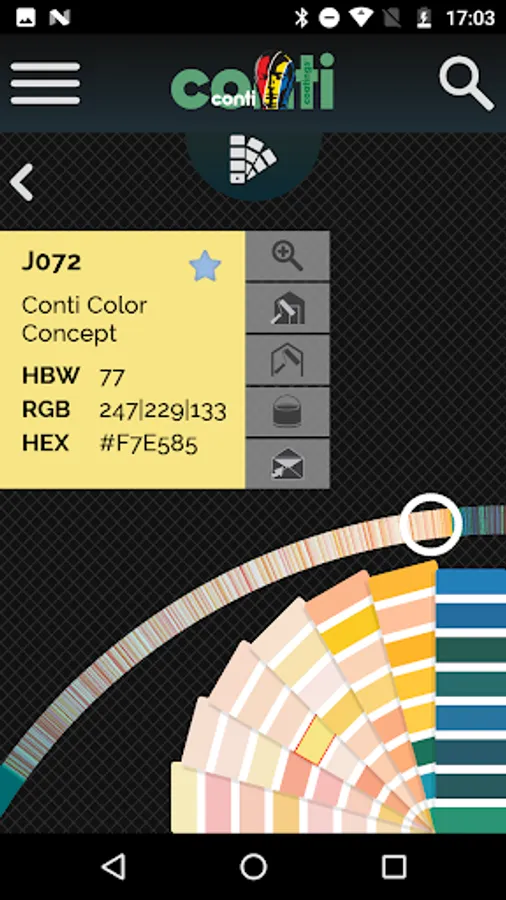 Use your mobile phone and the Conti color scan function for the color of your choice. For example, you are sitting with friends and you like the color on a living room wall. Take a photo of the wall surface with your mobile phone and you will receive a corresponding color shade suggestion from the Conti color fans. This is how you get to your desired color quickly and easily.